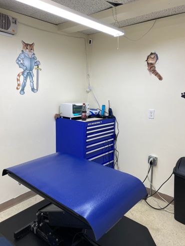 We also have a separate cat room which allows us to groom your cat without the distraction of other pets (aside from any family member cats you also bring in) being in that room. The pictures of our cat room can be seen below.